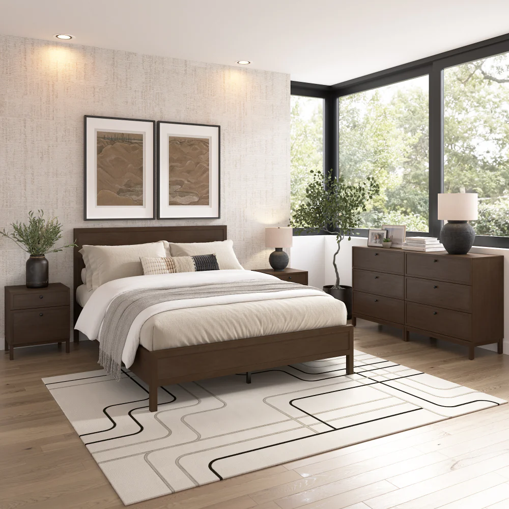 Create symmetry and expanded storage with the Bush Home Avery 3 Drawer Dressers – Set of 2. Clean shaker drawer fronts, modern post legs, and two included knob finish options in each dresser box define a structured silhouette that feels balanced and timeless. Crafted from birch veneer, engineered wood, and solid poplar legs, each dresser showcases natural wood variation that adds depth and subtle character. Smooth-gliding, soft-close drawers with quick-connect assembly provide generous space for clothing and daily essentials, while flat side panels allow the pair to align seamlessly for a cohesive, modular look. Designed for dependable performance and elevated simplicity, this coordinated set delivers lasting function within a refined form. Each piece is one of a kind — and pairs perfectly with the full Avery collection.